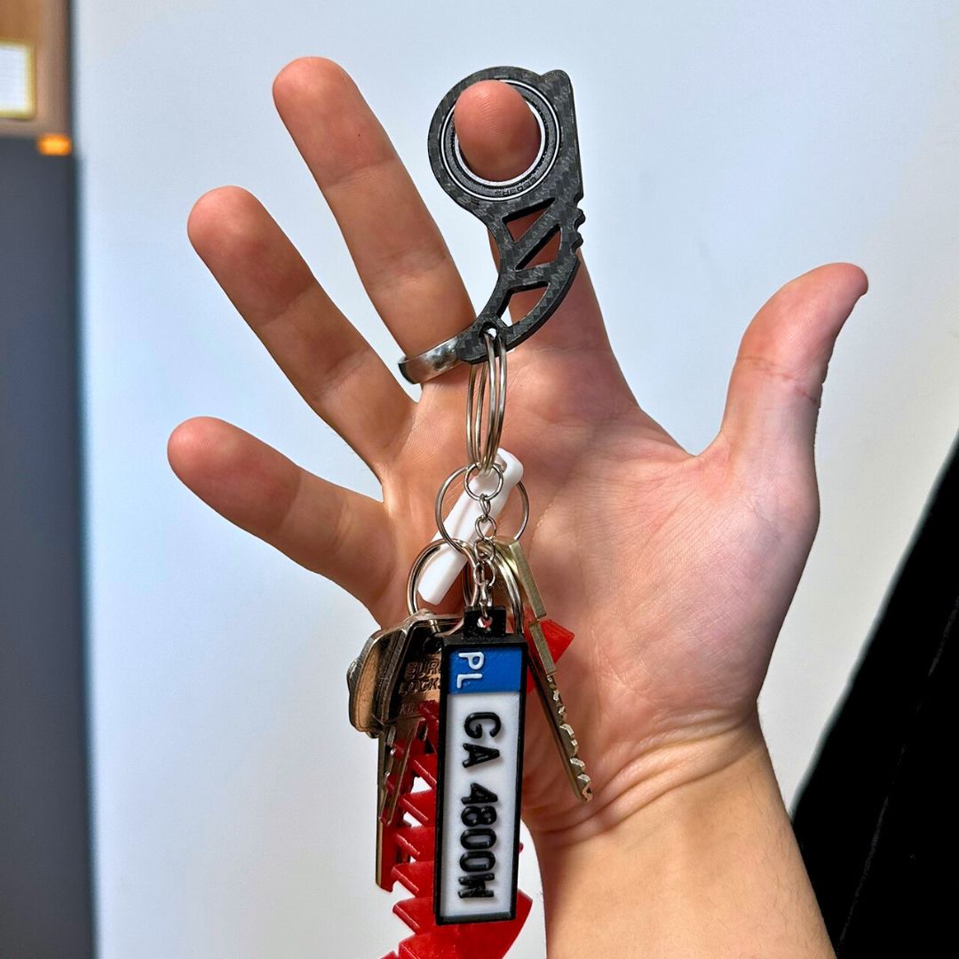 Brelok z łożyskiem inspirowany Karambitem do kręcenia kluczami.